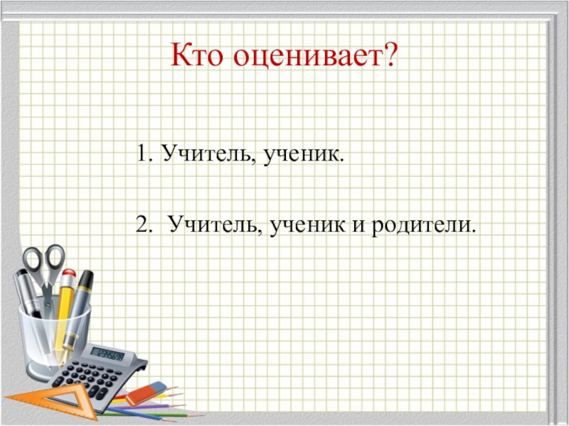 - Система оценивания выстраиваемая таким образом, развивает у учащихся умение проверять и контролировать себя;В оценочной деятельности должен