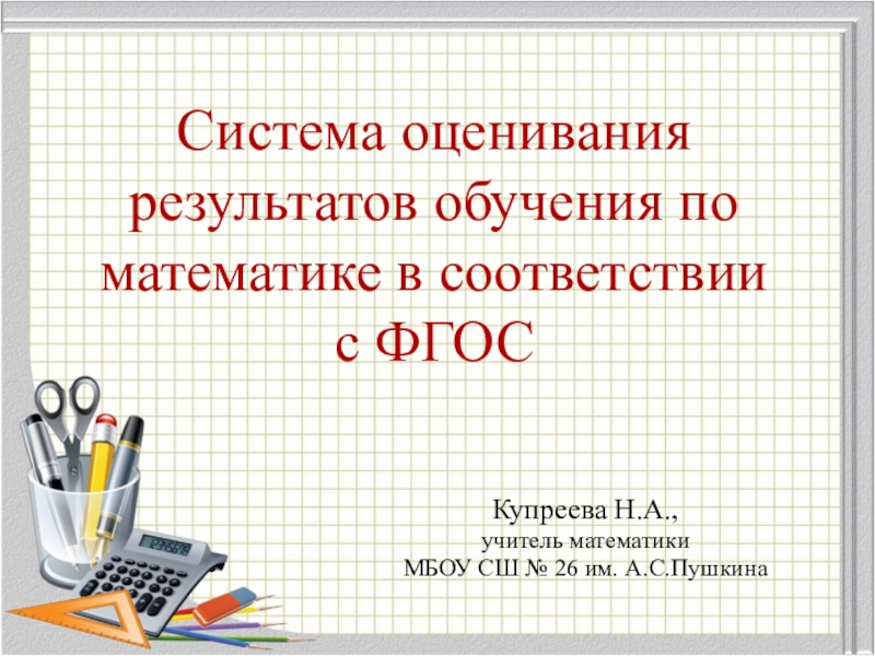 Система оценивания результатов обучения по математике в соответствии с ФГОСКупреева Н.А., учитель математики МБОУ СШ
