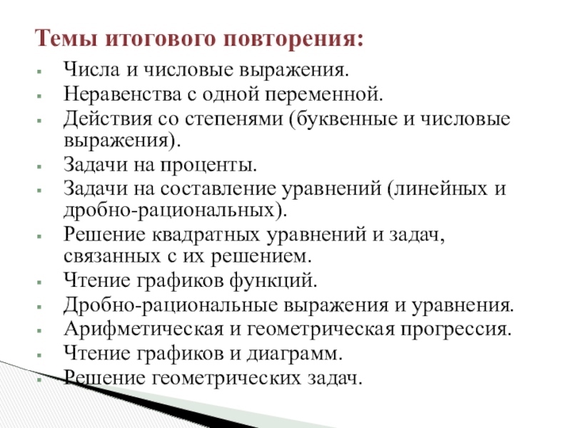 Темы итогового повторения: