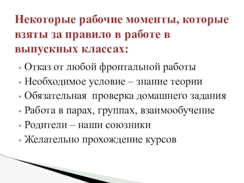 Некоторые рабочие моменты, которые взяты за правило в работе в выпускных классах:
