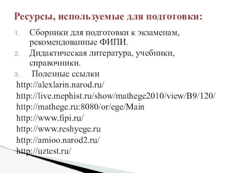 Ресурсы, используемые для подготовки: