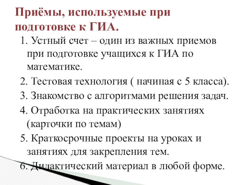 Приёмы, используемые при подготовке к ГИА.