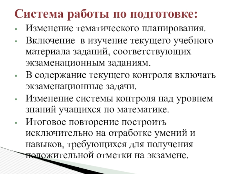 Система работы по подготовке: