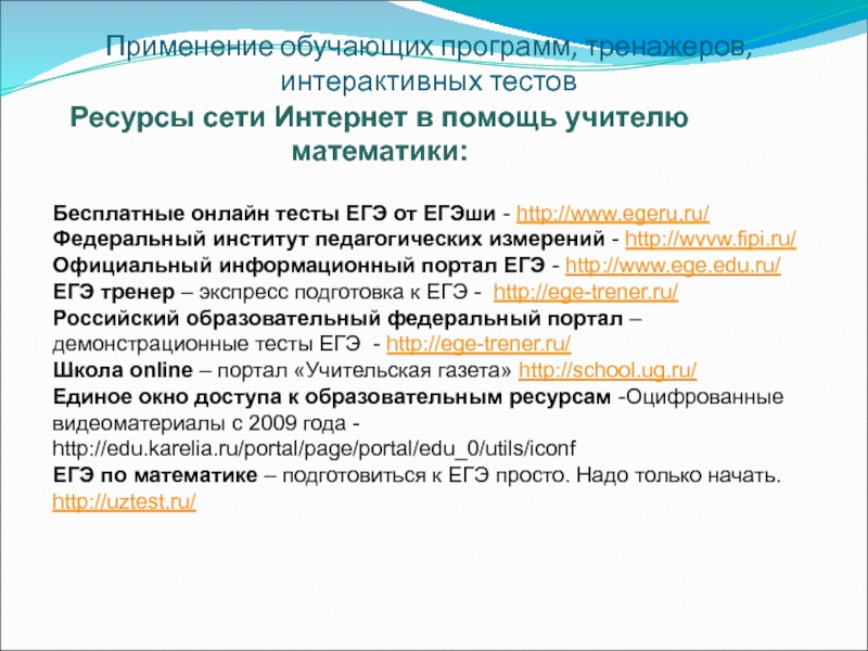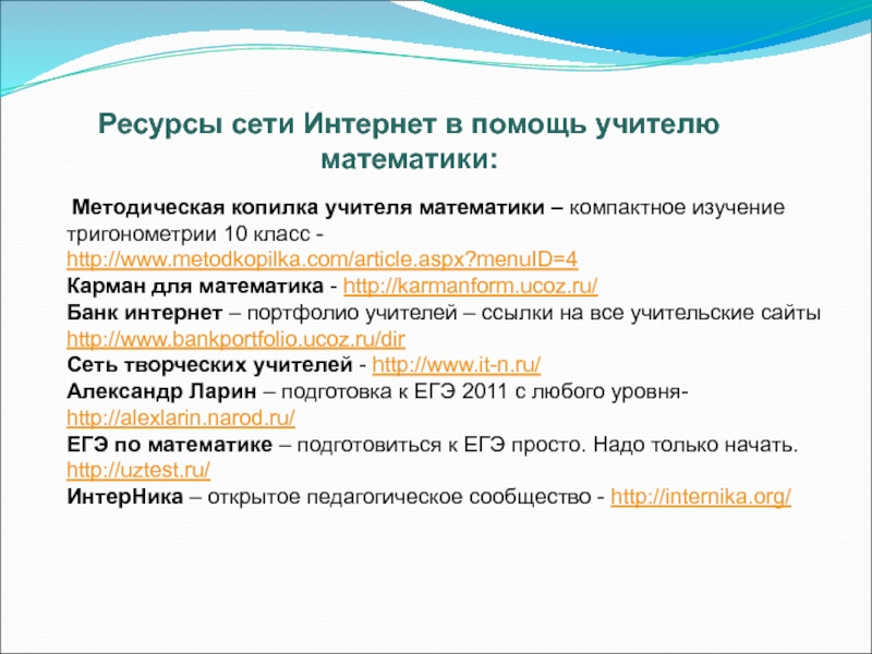 Ресурсы сети Интернет в помощь учителю математики: