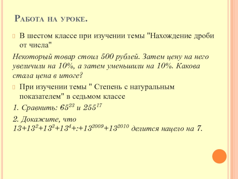 При изучении темы " Степень с натуральным показателем" в седьмом классе