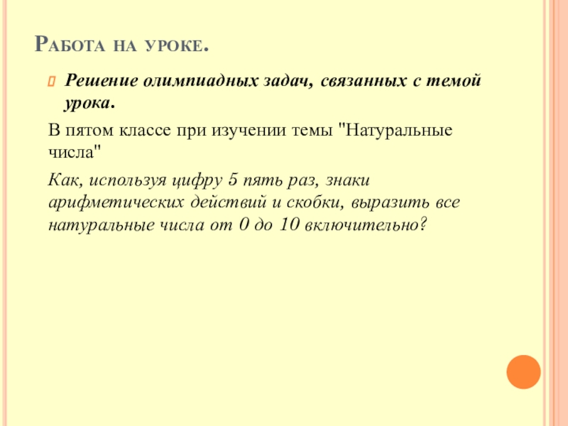 Как, используя цифру 5 пять раз, знаки арифметических действий и скобки, выразить все натуральные числа от 0 до 10 включительно?