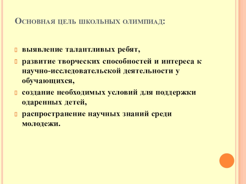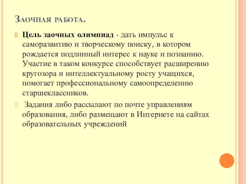 Цель заочных олимпиад - дать импульс к саморазвитию и творческому поиску,