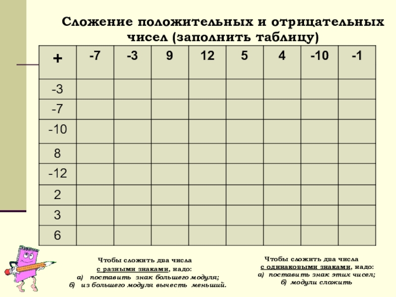 б) из большего модуля вычесть меньший.