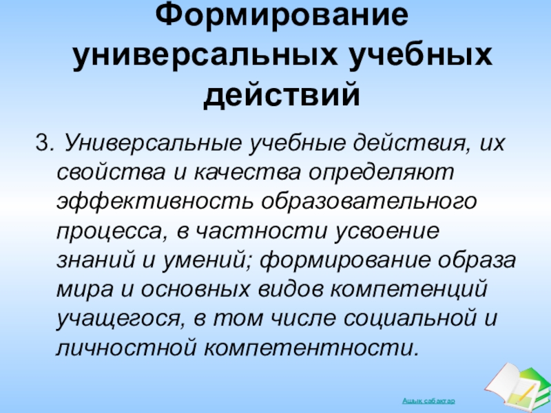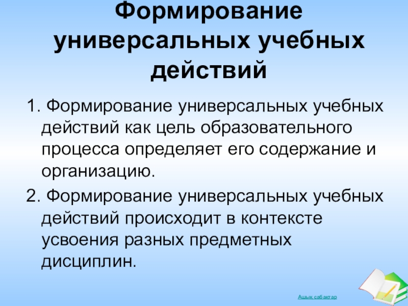 2. Формирование универсальных учебных действий происходит в контексте усвоения разных предметных дисциплин.