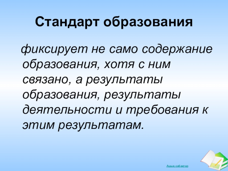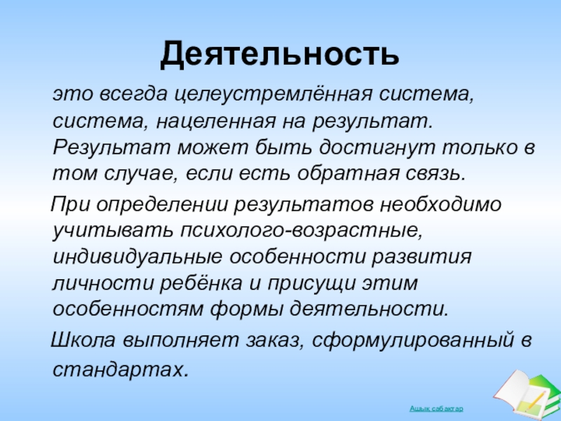 а результаты образования, результаты деятельности и требования к этим результатам.