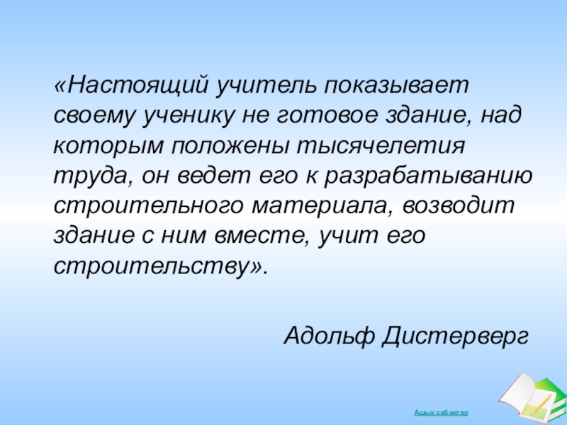 Слайд 19 «Настоящий учитель показывает своему ученику не готовое здание, над