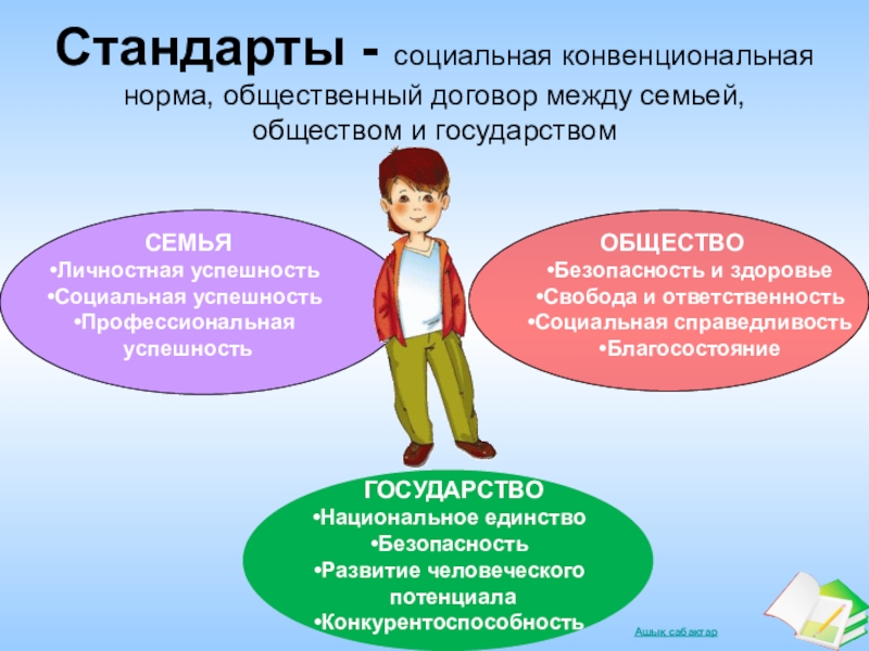 Слайд 7Стандарты - социальная конвенциональная норма, общественный договор между семьей, обществом и