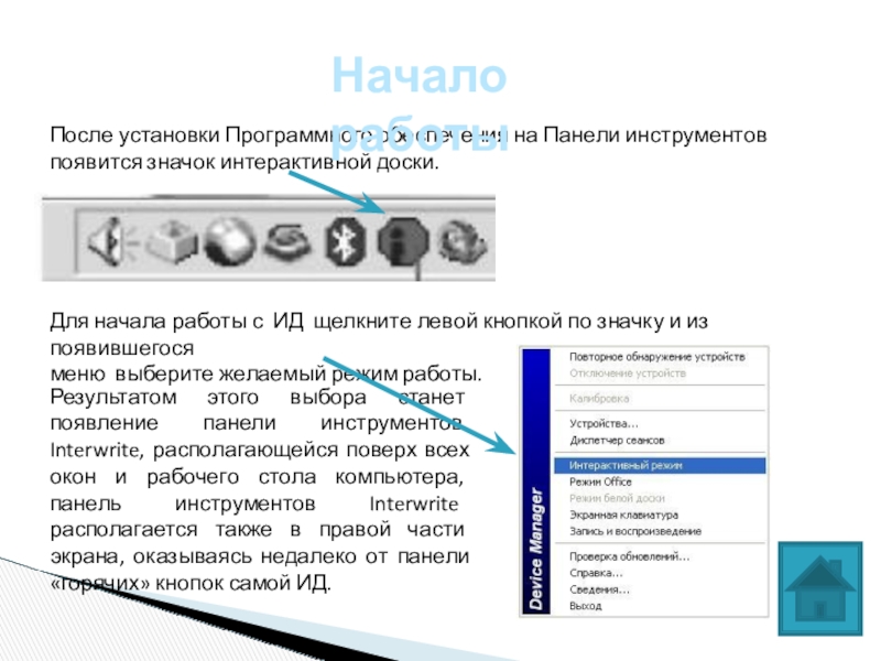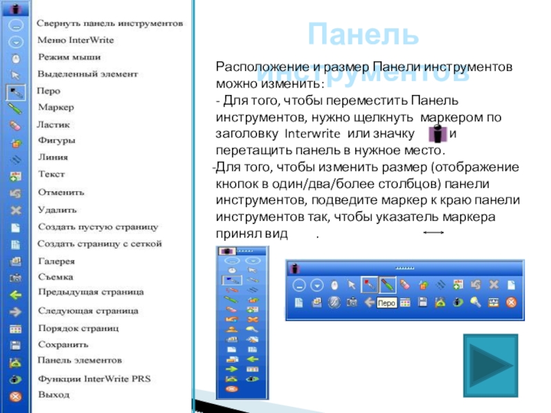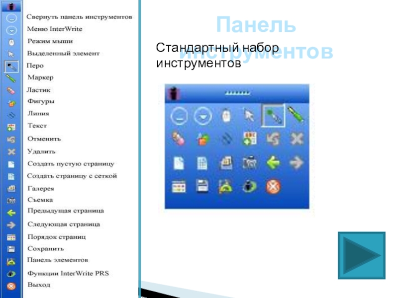 Результатом этого выбора станет появление панели инструментов Interwrite, располагающейся поверх всех окон и рабочего стола компьютера, панель инструментов Interwrite располагается также в правой части экрана, оказываясь недалеко от панели «горячих» кнопок самой ИД.
