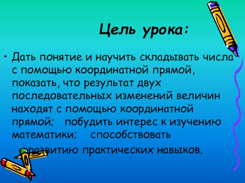 Тема: Сложение чисел с помощью координатной прямой.
