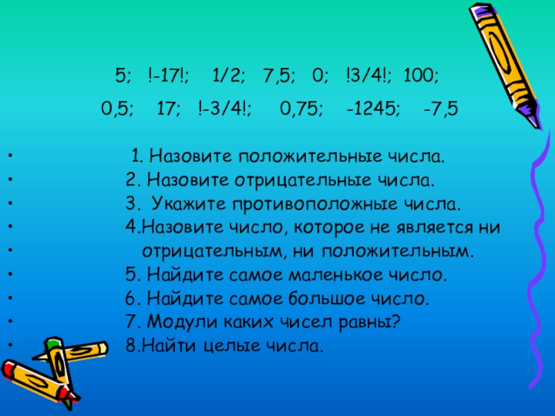 1. Назовите положительные числа.