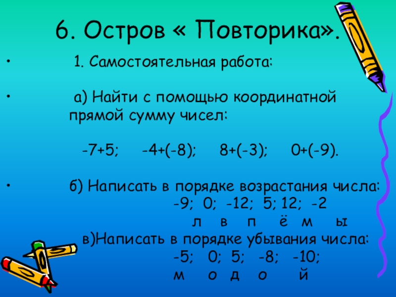 6. Найдите самое большое число.