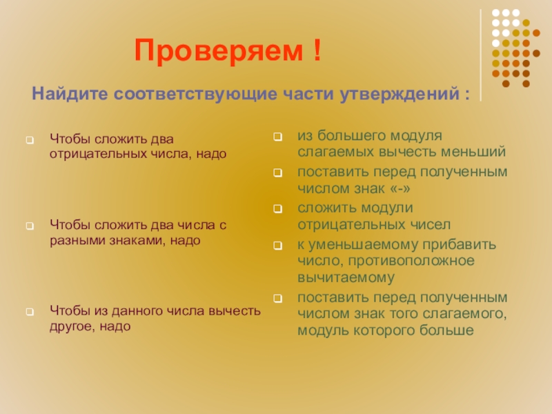 из большего модуля слагаемых вычесть меньший