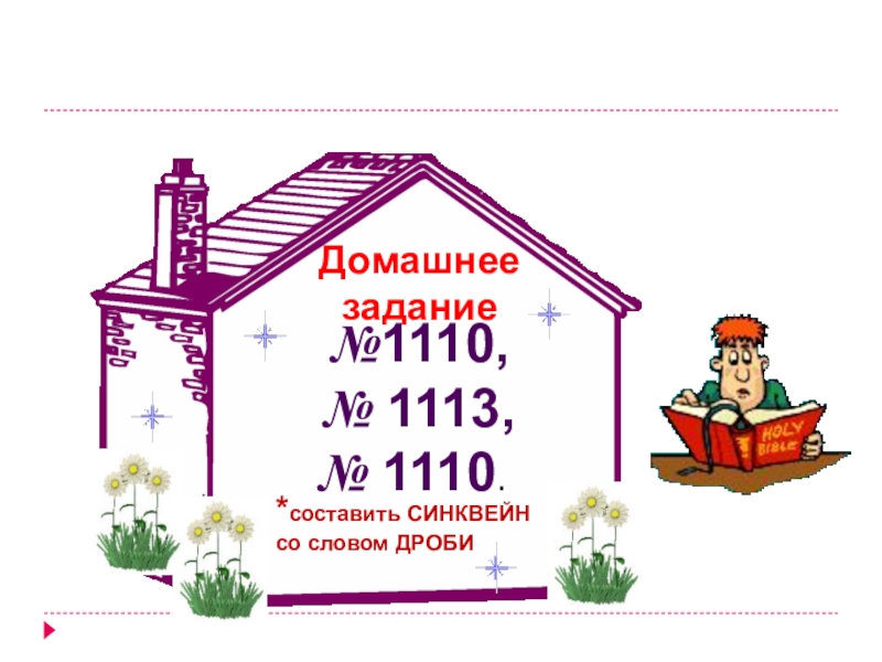 №1110, № 1113, № 1110.Домашнее задание *составить СИНКВЕЙН со словом ДРОБИ
