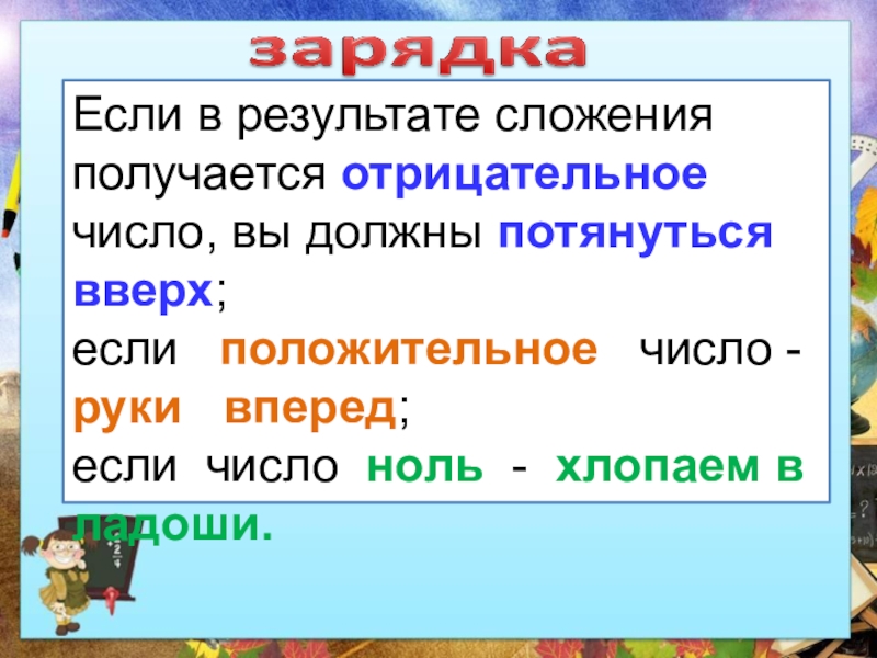Слайд 7Если в результате сложения получается отрицательное число, вы должны потянуться вверх;