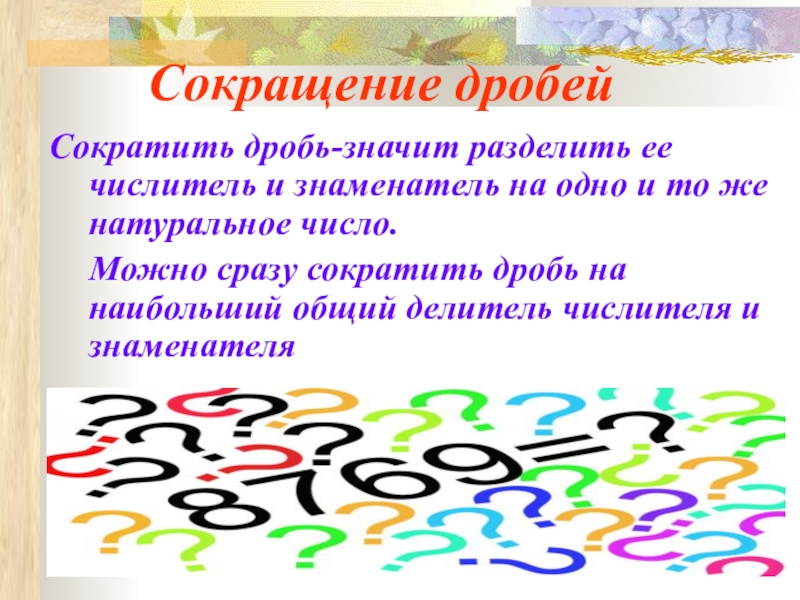 Слайд 5 Сокращение дробей