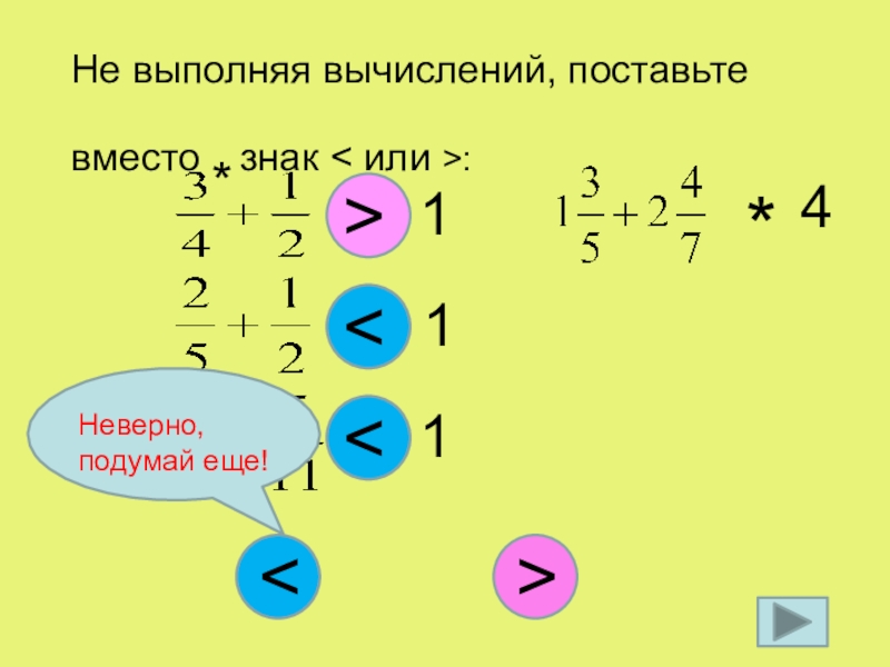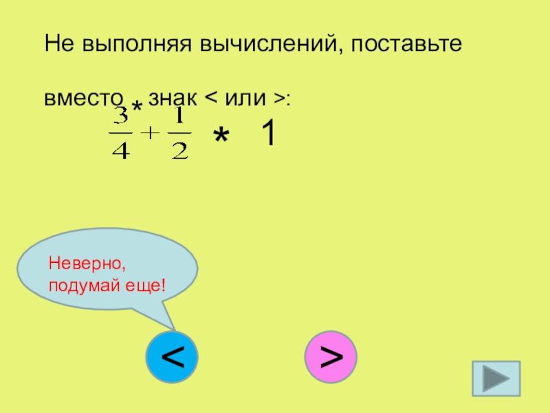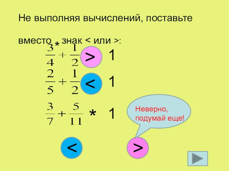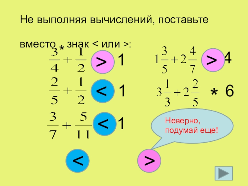 Слайд 7Не выполняя вычислений, поставьте вместо * знак < или >:
