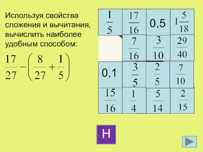 Слайд 10Используя свойства сложения и вычитания, вычислить наиболее удобным способом: