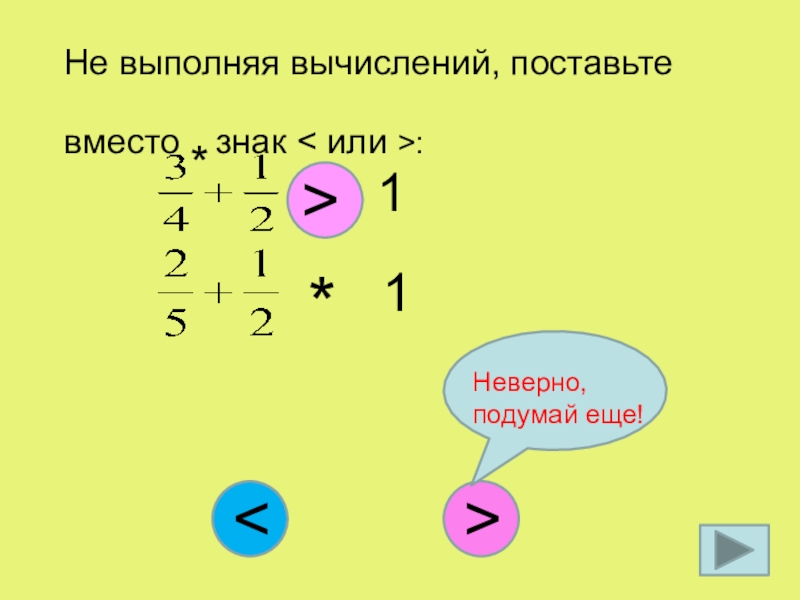 Слайд 6Не выполняя вычислений, поставьте вместо * знак < или >: