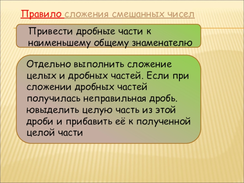Слайд 7Правило сложения смешанных чисел
