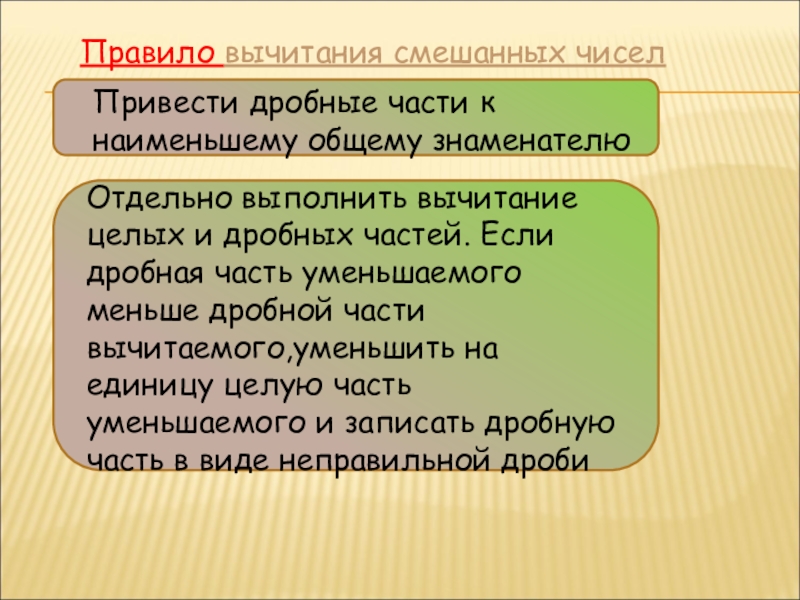 Слайд 9Правило вычитания смешанных чисел