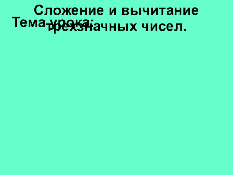 Тема урока:Сложение и вычитание трехзначных чисел.