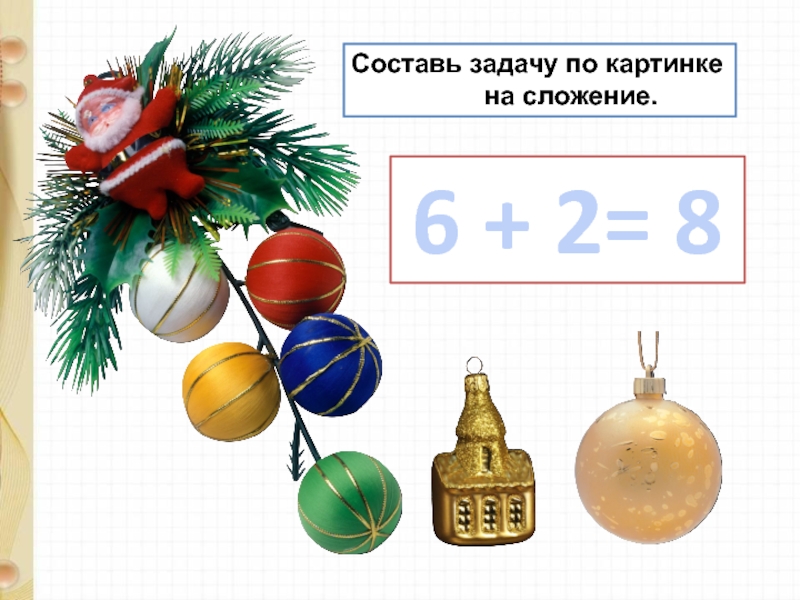 Составь задачу по картинке         на сложение.6 + 2= 8