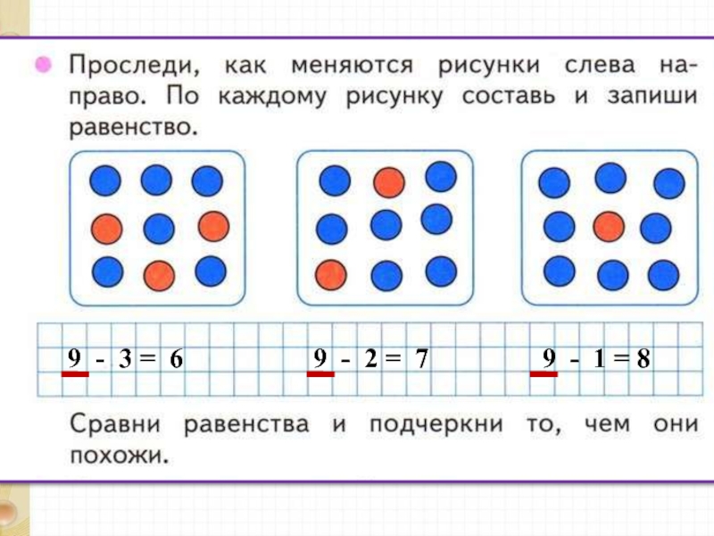 9 - 3 = 69 - 2 = 79 - 1 = 8