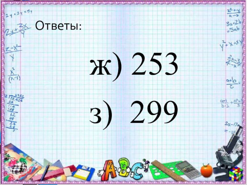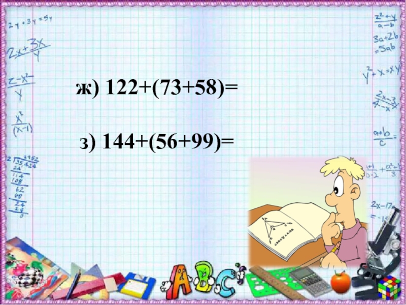 Слайд 16ж) 122+(73+58)= з) 144+(56+99)=