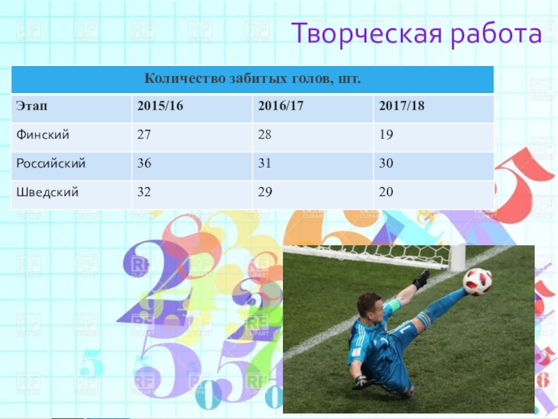 Творческое задание: Придумать задачу используя статистические данные по чемпионату мира