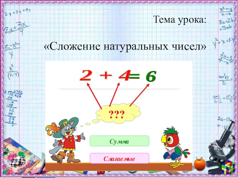 Слайд 10Тема урока: «Сложение натуральных чисел»