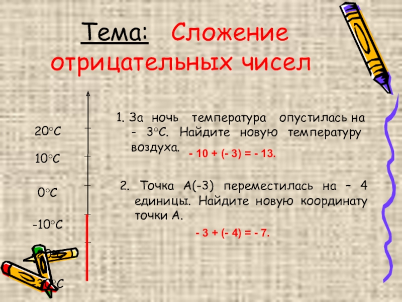 2. Точка А(-3) переместилась на – 4 единицы. Найдите новую координату точки А.