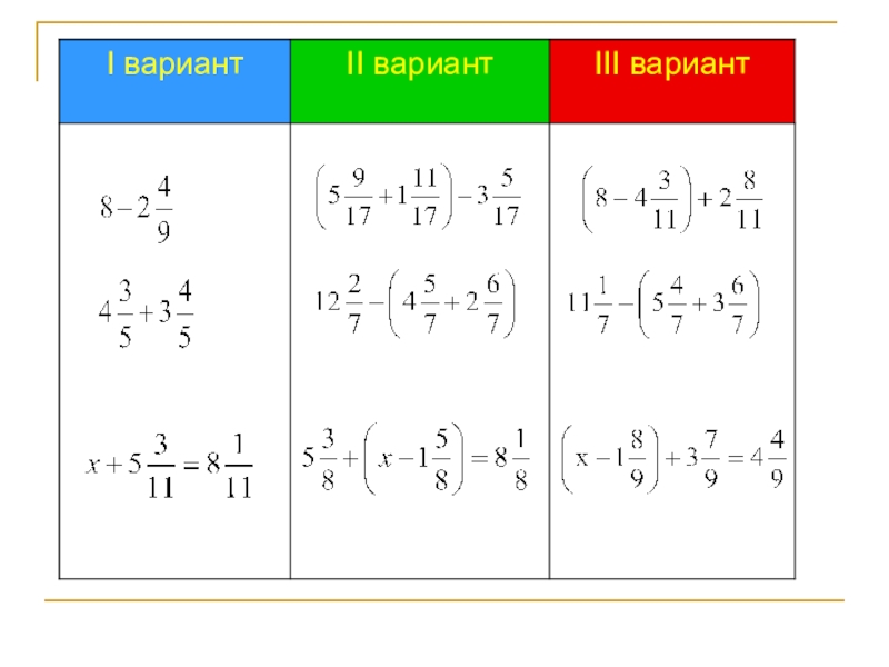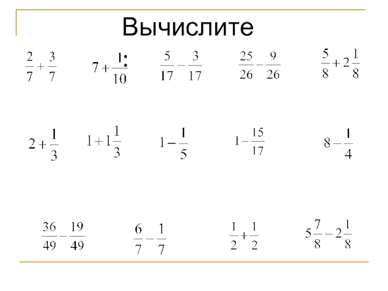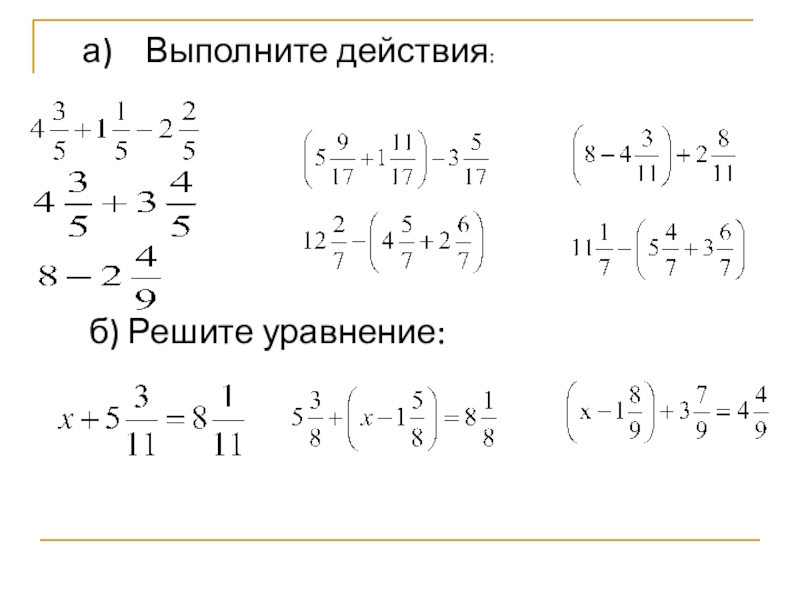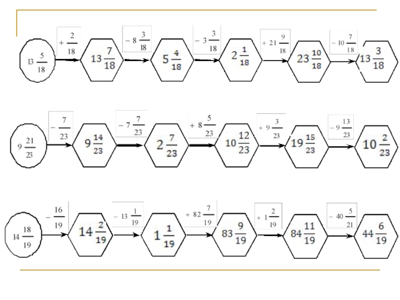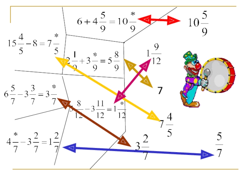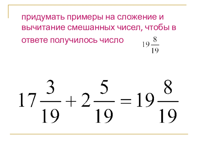 Слайд 7придумать примеры на сложение и вычитание смешанных чисел, чтобы в ответе