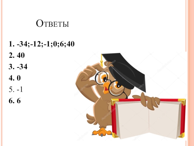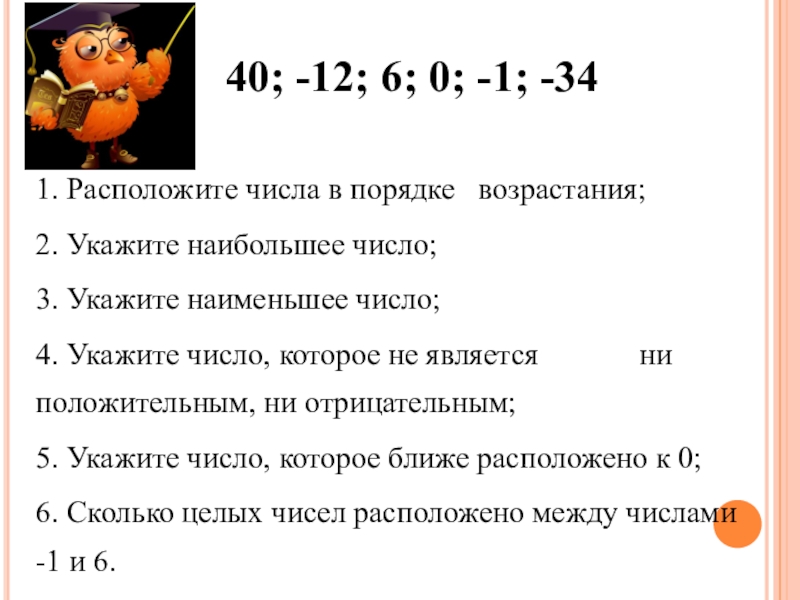 6. Сколько целых чисел расположено между числами -1 и 6.