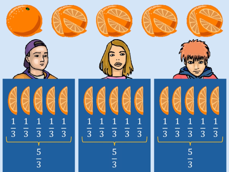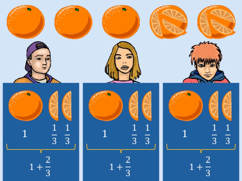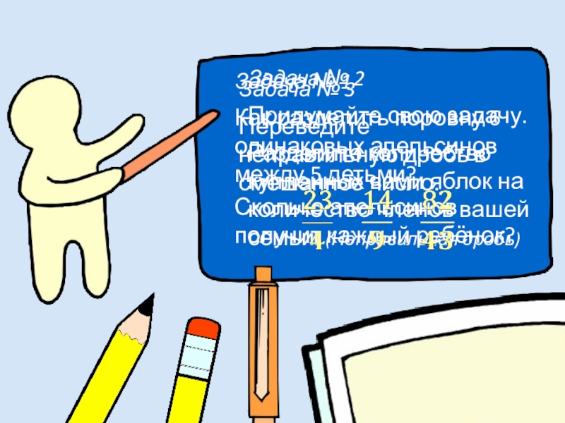 Разделите количество купленных вами яблок на количество членов вашей семьи. (Неправильная дробь)