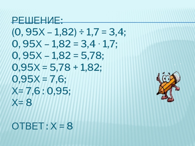 (0, 95х – 1,82) ÷ 1,7 = 3,4;