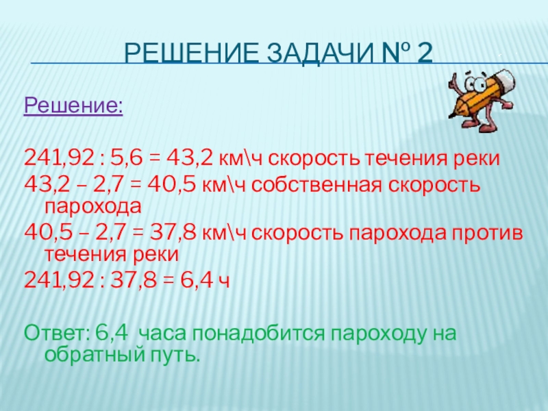 Ответ: 6,4 часа понадобится пароходу на обратный путь.