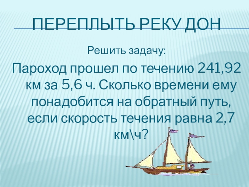43,2 – 2,7 = 40,5 км\ч собственная скорость парохода