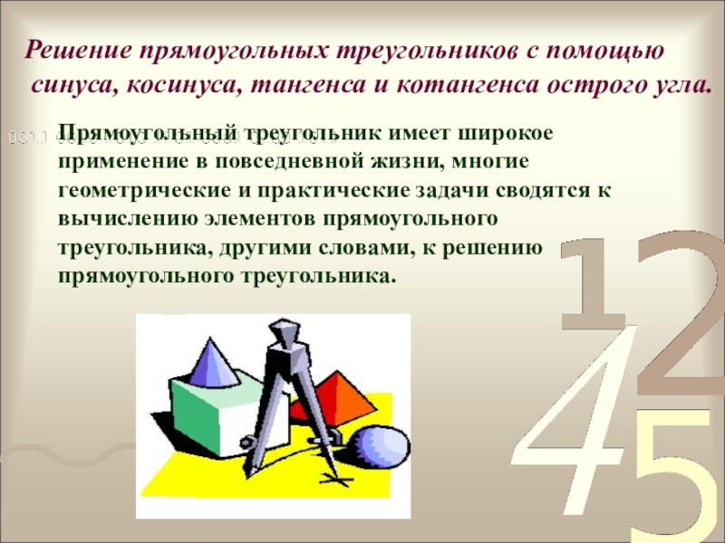 Решение прямоугольных треугольников с помощью