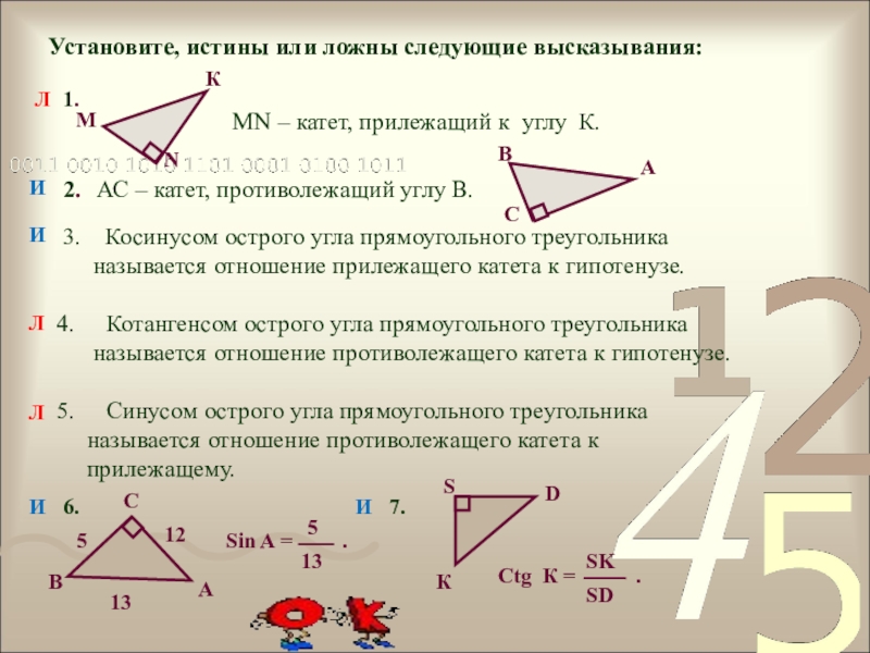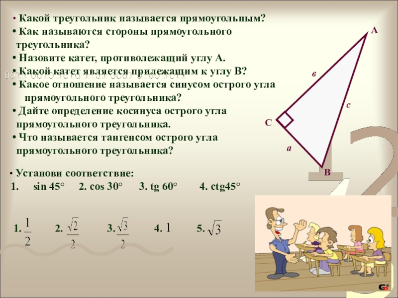 синуса, косинуса, тангенса и котангенса острого угла.