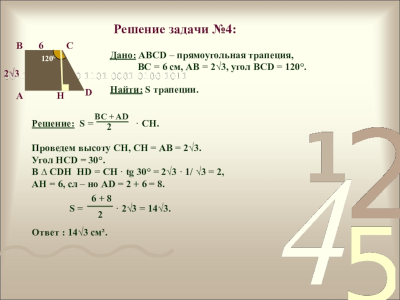 Найти площадь трапеции, если один из ее углов