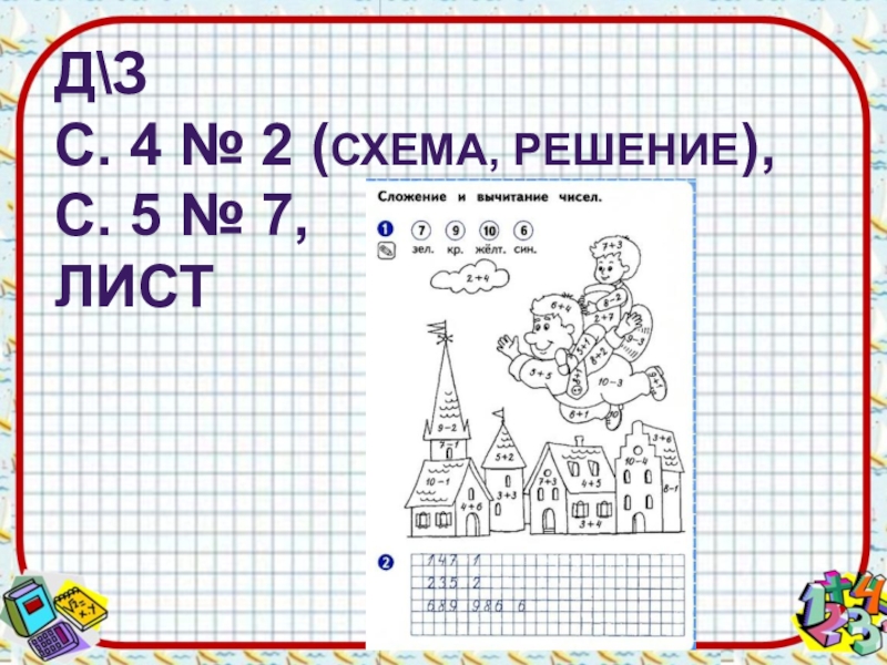 Д\З С. 4 № 2 (СХЕМА, РЕШЕНИЕ), С. 5 № 7,ЛИСТ