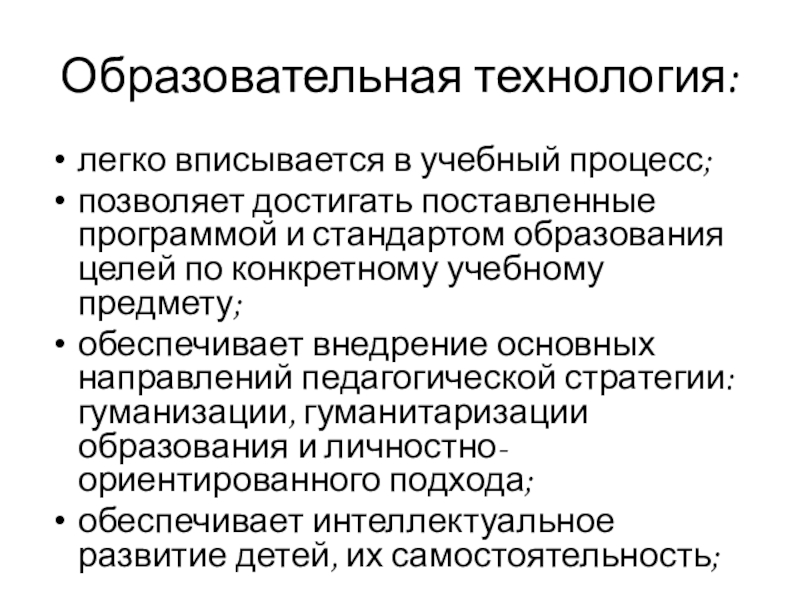 Образовательная технология должна удовлетворять основным требованиям (критерии технологичности):