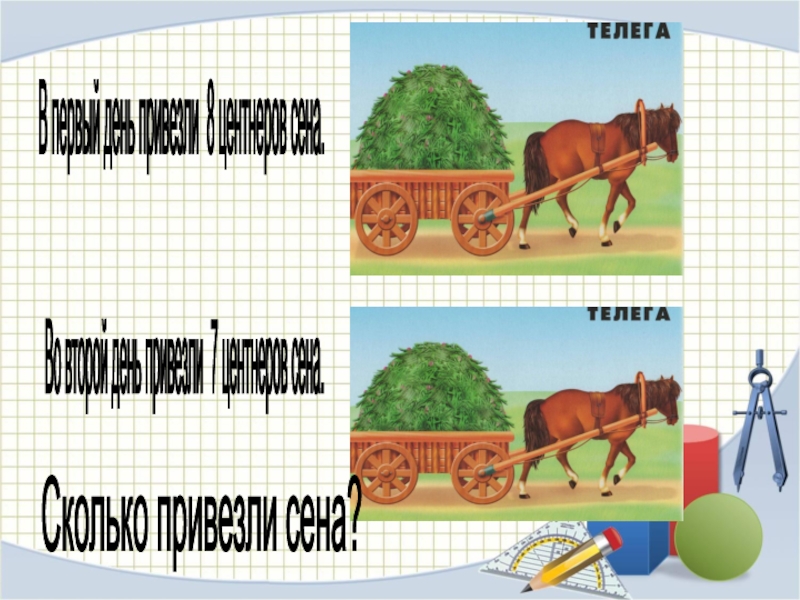 Слайд 18 В первый день привезли 8 центнеров сена.