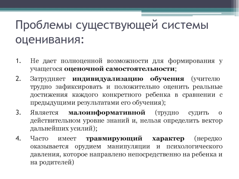 Распространяется не только на предметные ЗУН, но и учебную дея-тельность, общеучебные навыки, познавательную активность