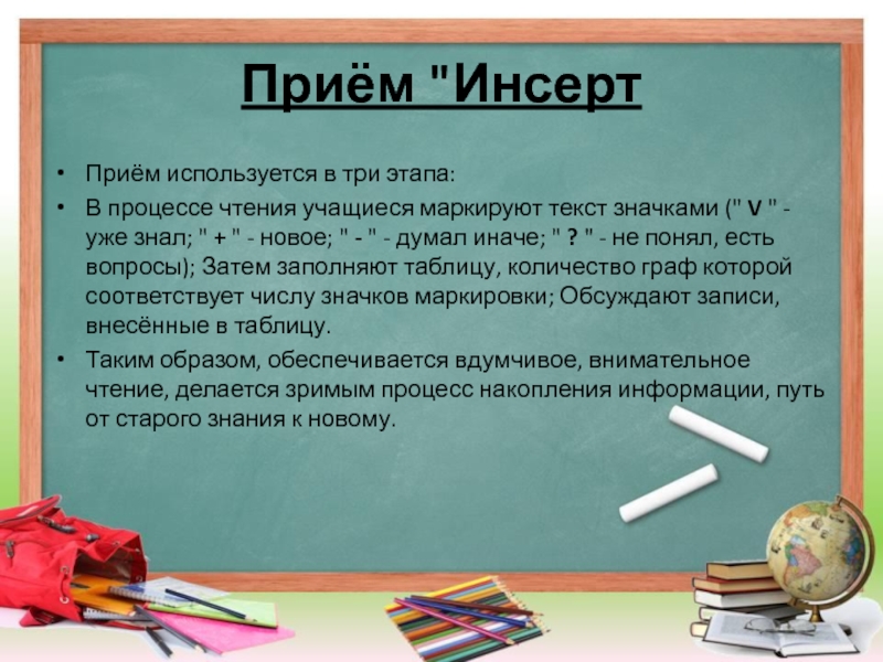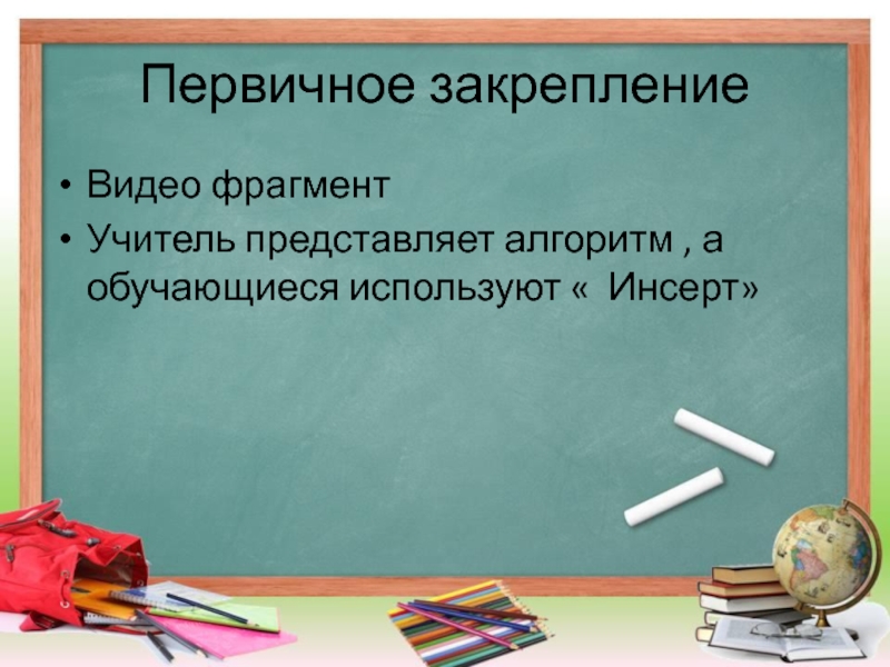 Учитель представляет алгоритм , а обучающиеся используют « Инсерт»